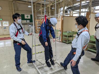 12月2日(火)に電気設備科では「とちぎ人材カレッジ」を実施しました。藤井電工株式会社様から講師をお迎えして「墜落制止用器具(フルハーネス)」の適切な使用方法、実際に器具を装着してぶら下がり(墜落後)を体験しました。メーカー担当者様からの貴重な講話で、訓練生だけでなく職員も学ぶことが多い内容でした。