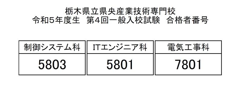 令和5年度生 第4回一般入校試験(6科)、第2回一般入校試験(木造建築科)について