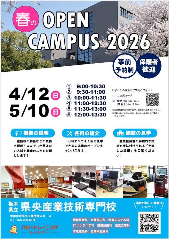 産技校の「春のオープンキャンパス」を実施します。