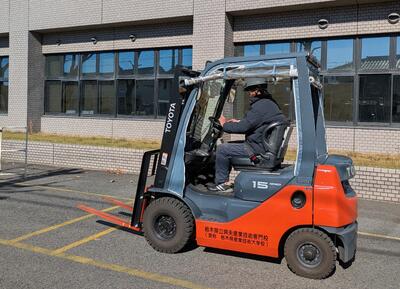 本校では運転技能講習を修了することで、最大荷重1トン以上のフォークリフトでも運転することができるようになります。